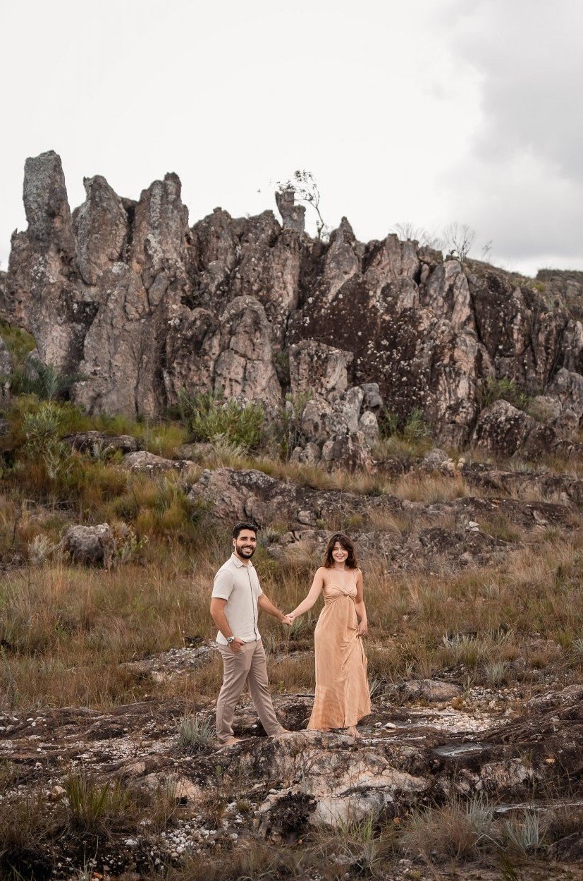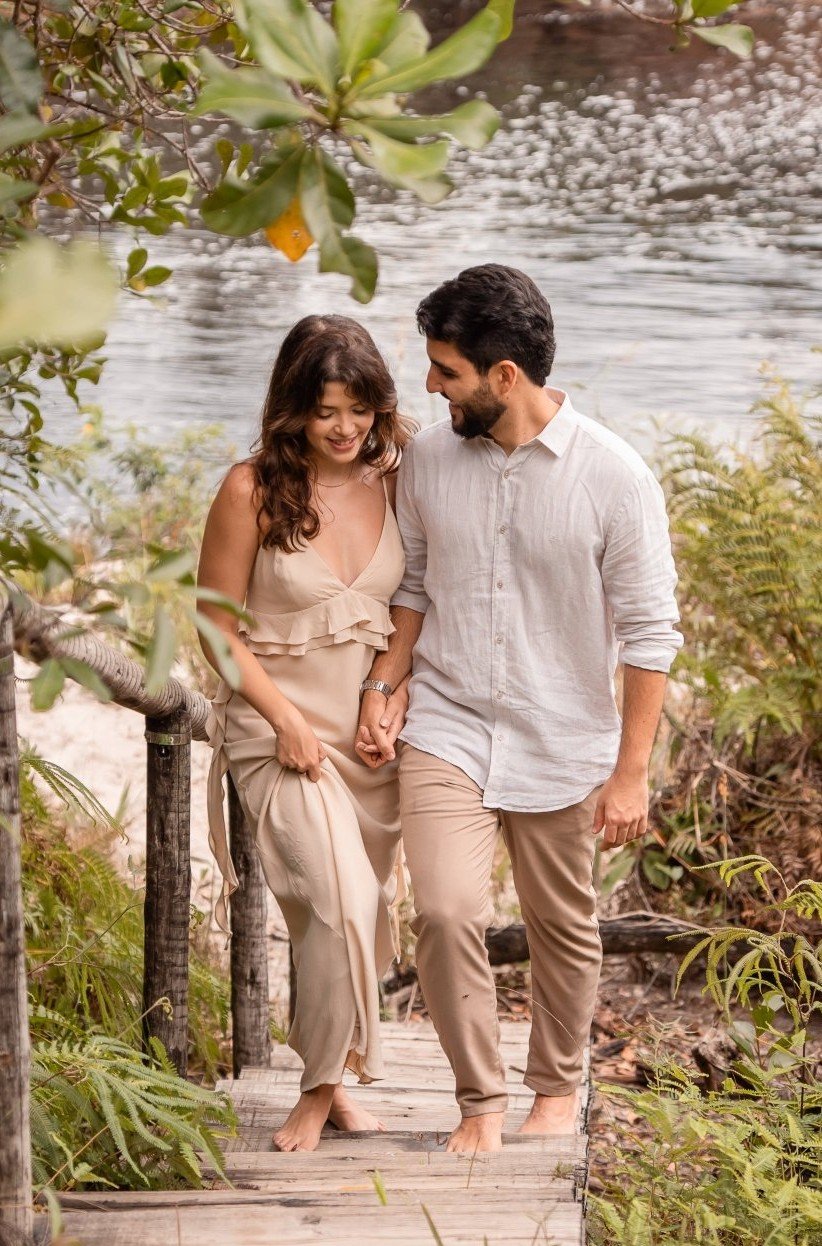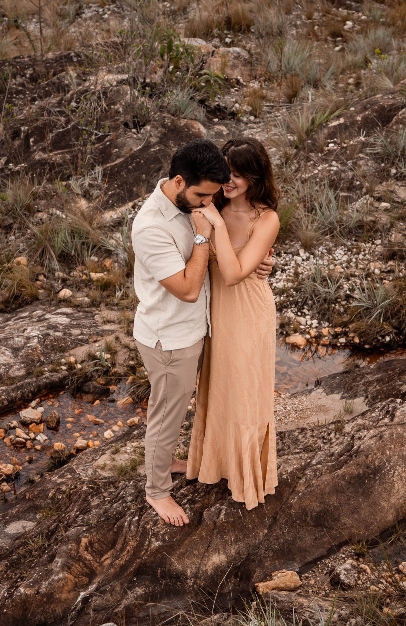 A cerimônia e a recepção acontecerão em uma fazenda, durante o inverno, quando as temperaturas costumam ser mais amenas — especialmente à noite. Recomendamos, portanto, a escolha de peças adequadas ao clima.
